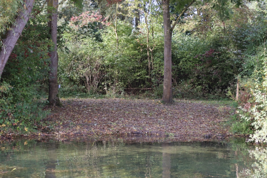 Plat à l’emplacement du biwy, des arbres sont présents sur la berge. Profondeur moyenne (1,5 à 4m en moyenne), des herbiers (élodée) sont présents mais pas d'accroc, belle zone de pêche le long de la bordure à droite au pied d’une petite forêt immergée. Ce poste permet de pêcher la pleine eau sur un immense plateau de 25 hectares parsemé de taches sans herbiers. Poste simple ou double, il est à 10m du poste 19 et 400m du poste 1. Orienté nord. Toilettes à 70m et douches à l’accueil.